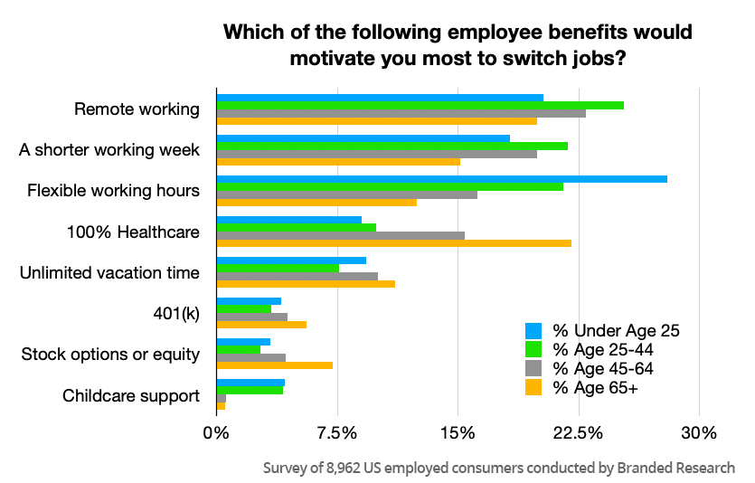 - Workers under 25 are more likely to switch jobs for flexible work hours