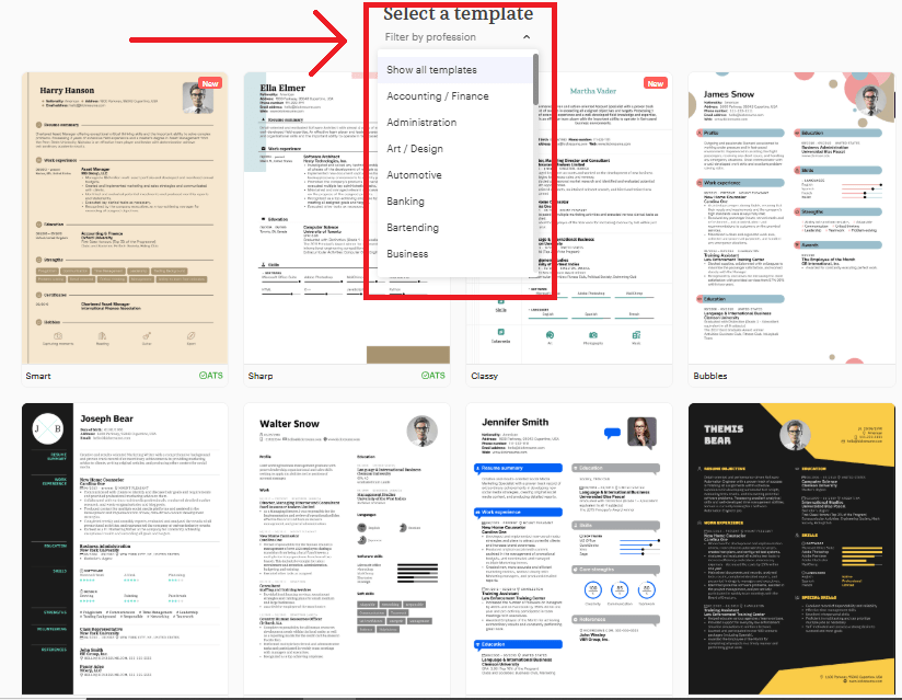 - Template selection: Once you're logged in, the next step is to choose from over 50 professionally designed templates. These templates are categorized based on different industries and job roles, so you can find one that best suits your needs.