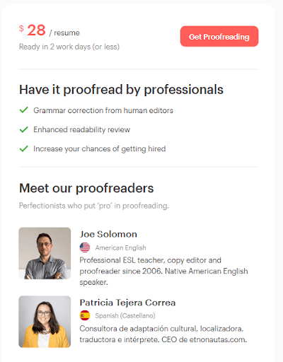 For $28 per resume, you can have your resume reviewed by professional editors who check for grammar, clarity, and overall readability. The turnaround is fast, usually within two business days, and adds a valuable layer of polish.
