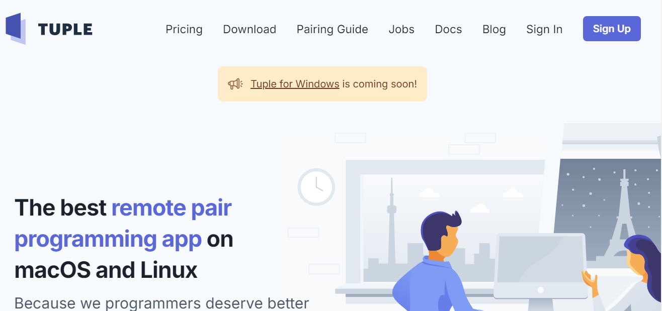 | Tuple | One-click calls, Screen sharing, Low-latency remote control, Annotation capabilities, High-fidelity audio/video | Developers for remote pair programming | Free, Engineering Teams: $30/user/month, Enterprises: $10,000/year | 5/5 |
