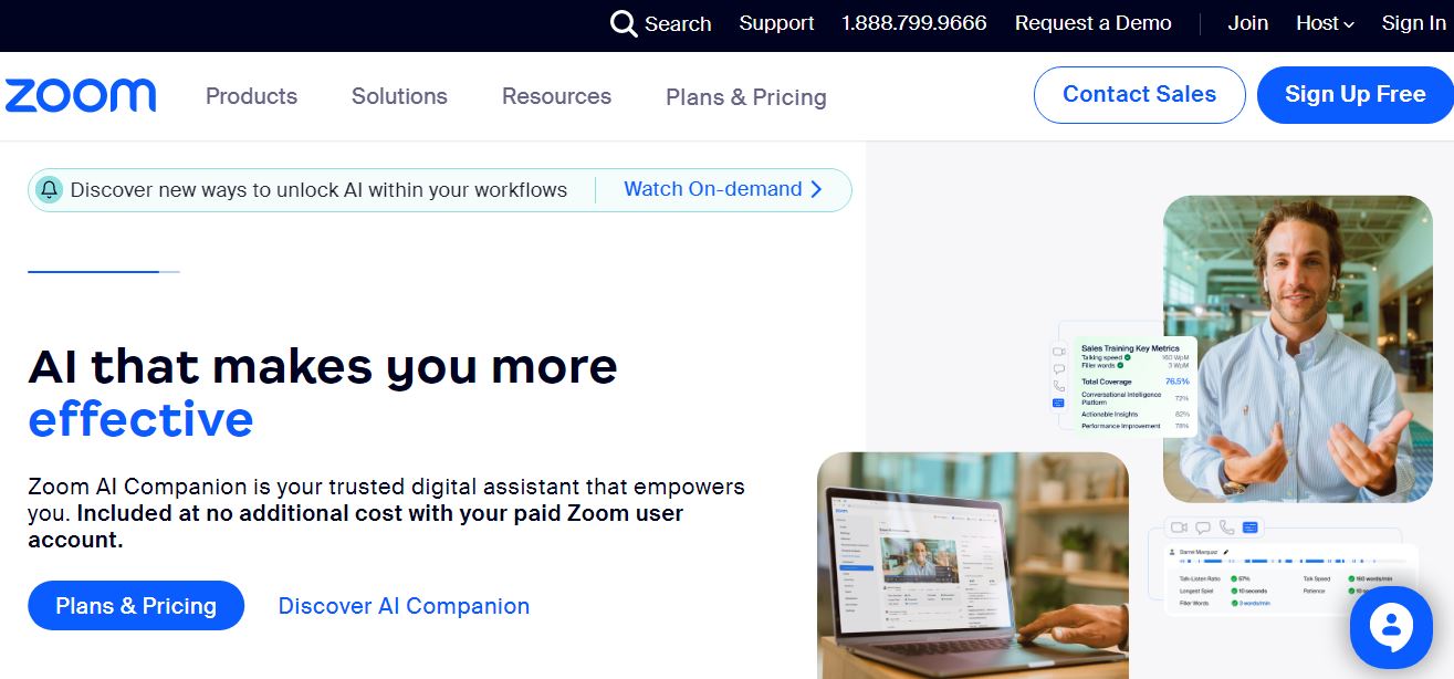 Moreover, its features extend to breakout rooms for focused group discussions, screen sharing for enhanced project collaboration, and translated captions to bridge language gaps among global teams. Zoom also has advanced AI-driven tools like intelligent recording processing with highlights and summaries, conversation analytics, and AI-powered assistance for drafting chats to elevate the remote working experience.