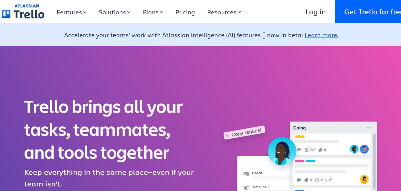 | Trello | Visual organization of work, Detailed task management, Integration with other tools, Scalable | Project management | Free, Standard Plan: $5/user/month, Premium Plan: $10/user/month, Enterprise Plan: $17.50/user/month | 3.8/5 |
