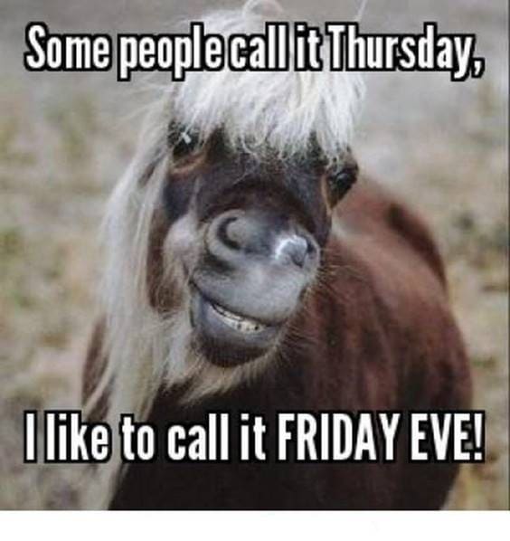 Life is all about how you look at it. This cute little horse prefers to look on the positive side of things. He says, "Some people call it Thursday. I like to call it Friday Eve."