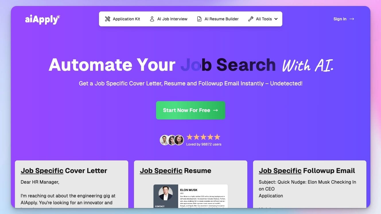 | 2. aiApply | Free, Pro: $19.93 per month or $83.16 per year | No | 🥈 8.8 |