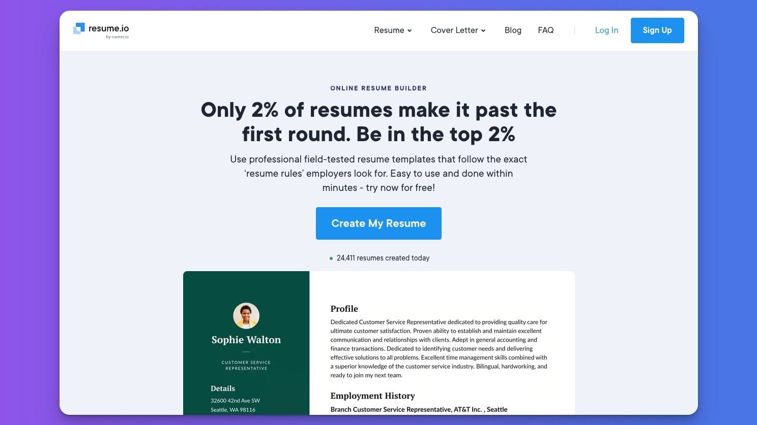 The platform features a top-notch UX/UI that makes the resume-building process straightforward.