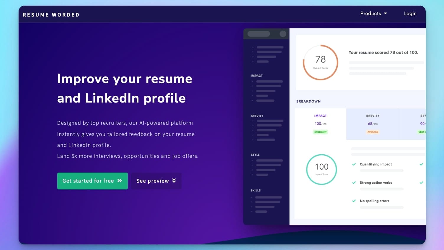 Resume Worded is an intelligent writing assistant that can help you produce professional summaries in minutes. Users of this resource have a much better chance of sticking out from the crowd and making a good impression on prospective employers.