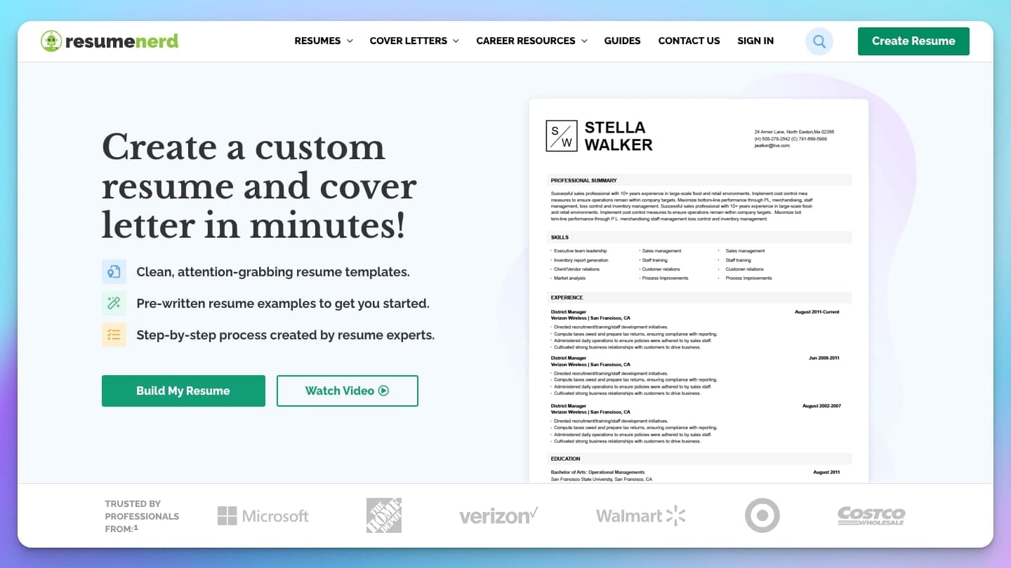 ResumeNerd sets itself apart with a user-friendly interface that simplifies the resume creation process into three easy steps. This platform boasts clean, eye-catching resume templates designed to grab employers' attention. With a vast collection of pre-written resume examples and a step-by-step process crafted by resume experts, it ensures that your resume not only looks professional but also resonates with your career objectives.