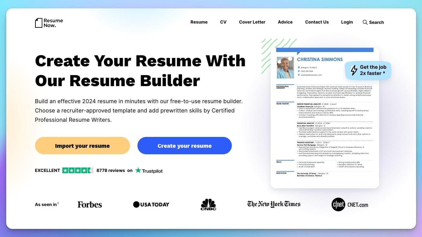 Resume now is a platform which offers professional resume assistance, such as examples and templates authorized by recruiters that are geared toward the jobs. It also provides valuable writing advice to help users quickly customize their resumes for each job application.