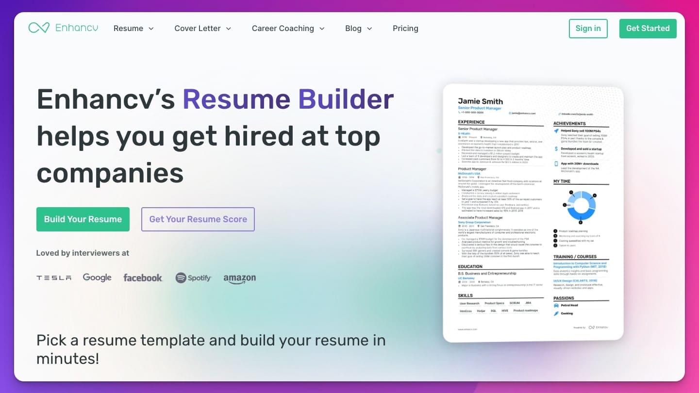 Enhancv is another AI-powered resume builder tool that can help you automate the process of resume building and CV generation. It allows you to choose from multiple templates, making your resume look exactly like you want it to look.