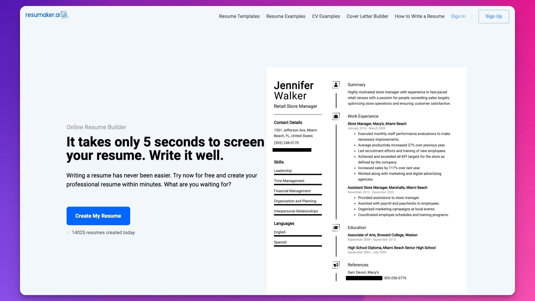 Resumes are easy to write with its intuitive interface. The builder offers many templates for various sectors and jobs. This variety lets users choose a format that suits their profession and position, providing industry-standard output.