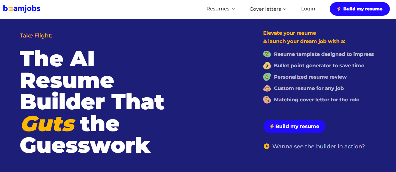 BeamJobs stands out for its blend of user-friendliness and powerful AI features that make it a top choice for creating professional resumes efficiently. The tool is designed to help job seekers effortlessly create, edit, and update their resumes with professional precision.