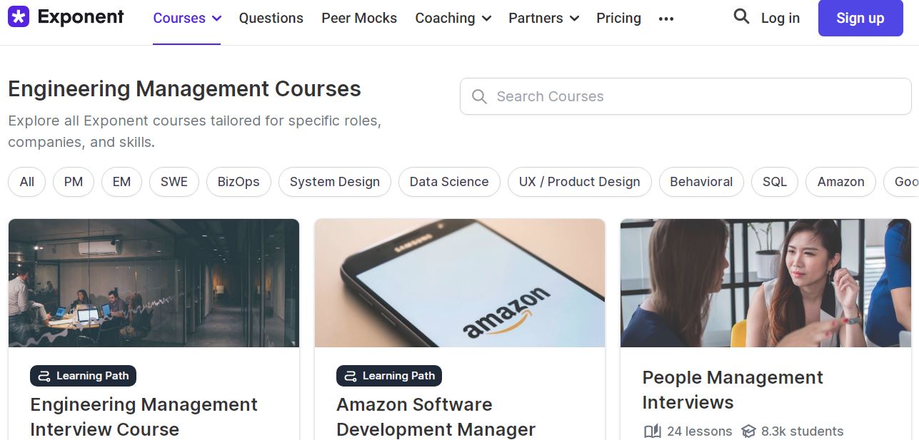 Exponent is a comprehensive interview preparation platform for tech roles, including product management, software engineering, data science, and more. A standout feature of Exponent is its peer-to-peer mock interview service, which allows you to practice your interview skills with others, thereby receiving and providing feedback.