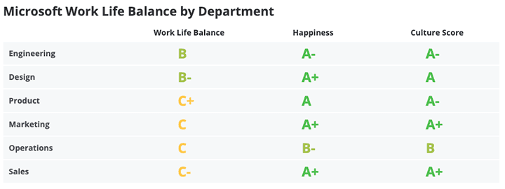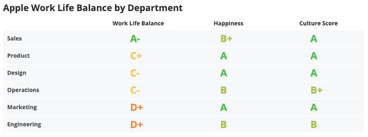 In a head-to-head battle of ratings on Glassdoor between Apple and Microsoft, employees rated the latter 0.5 higher than Apple regarding a work-life balance rating.