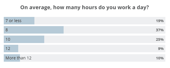 According to surveys by Comparably, Google working hours can be strenuous. Work time varies, but 44% of Googlers work 10+ hours on average.